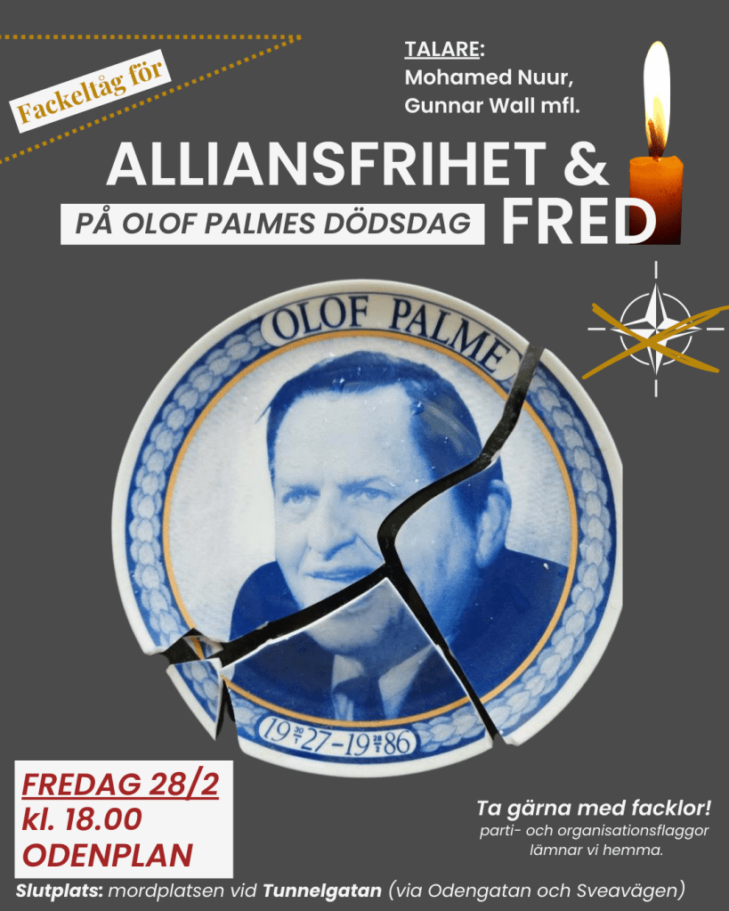 På årsdagen av mordet på Olof Palme, fredagen den 28 februari, hedrar vi statsminister Olof Palmes arbete för gemensam säkerhet, alliansfrihet och fred.