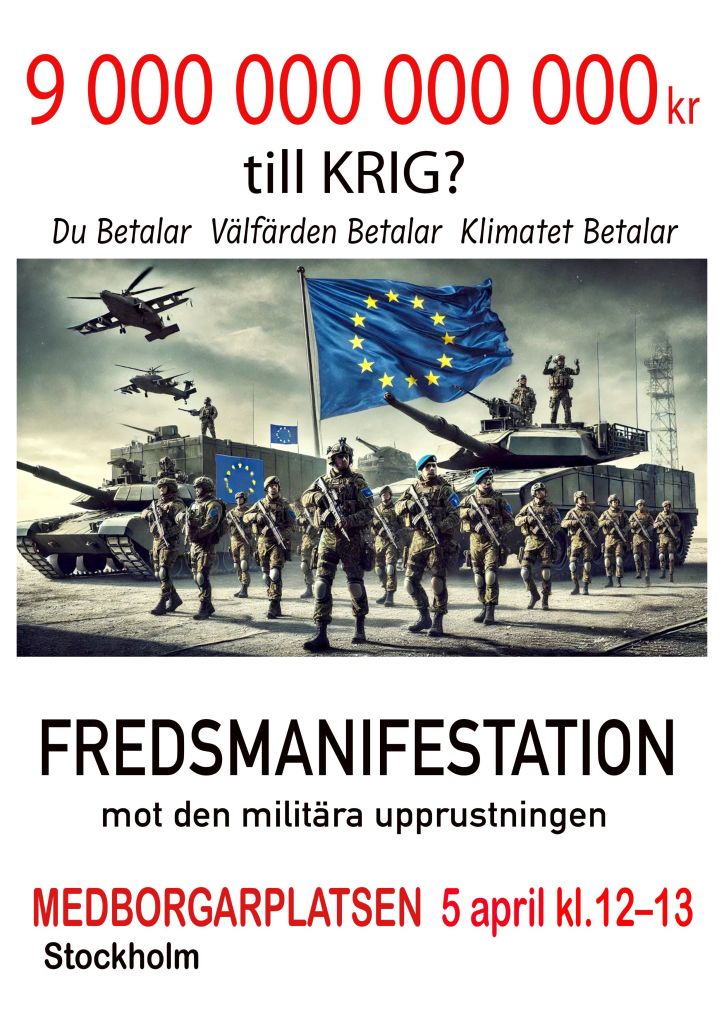 Med detta upprop inbjuds alla människor, föreningar, organisationer och nätverk till en gemensam protest mot den oerhörda militära upprustningen i världen, i Europa och i Sverige.